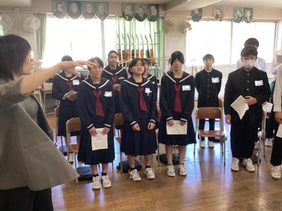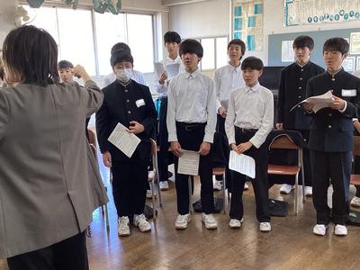 2年4組の音楽の様子です。合唱コンクールで歌う「時を越えて」を歌いました。ハーモニーが美しくなってきましたね。