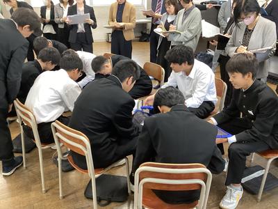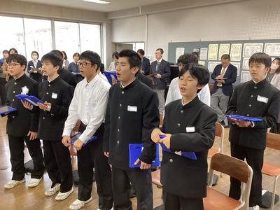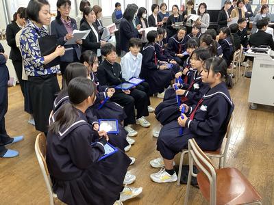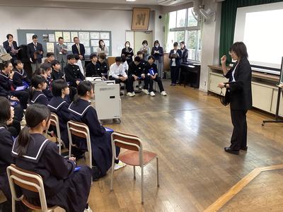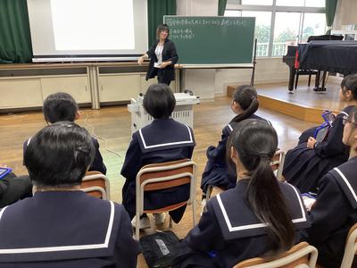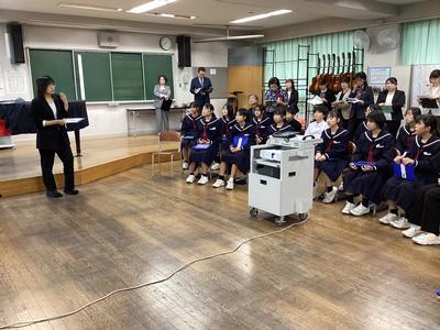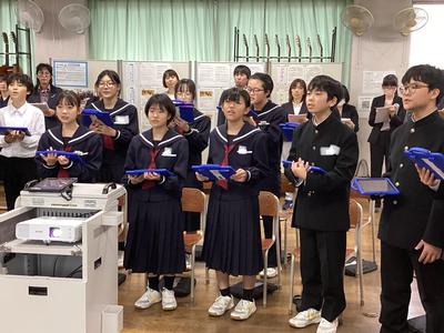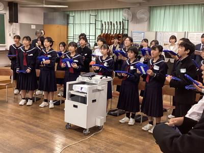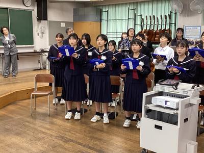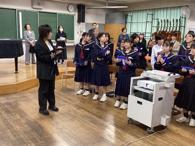 31日(金)に、第16回福井県学校音楽教育研究大会南越大会の中学校部会が本校を会場として行われました。1年4組の音楽の授業が公開され、県内各地から多くの先生方が参加されました。多くの参観者がいる中でしたが、生徒たちはいつも通り、笑顔で元気よく歌ったり発言したりしました。参観された方からは、たくさんのお褒めの言葉をいただきました。これからも楽しい音楽の授業を先生と一緒に作っていって下さいね。