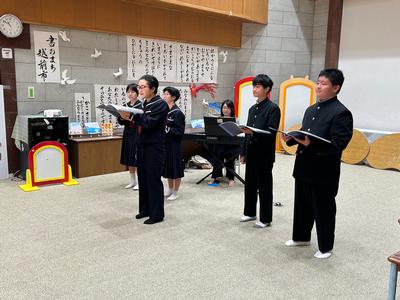 1日(土)に、かこさとしふるさと絵本館で「パピプペポー音楽会」が行われ、本校合唱部がたくさんの親子の前で歌を披露しました。聞いたことがある曲を選んだり、一緒に振り付けをしながら歌ったりと、小さい子どもさんも楽しめるように工夫を凝らした大変素晴らしい音楽会でした。