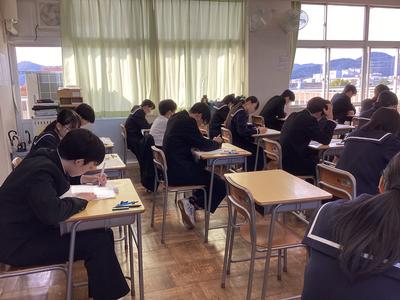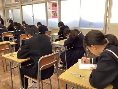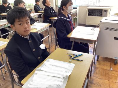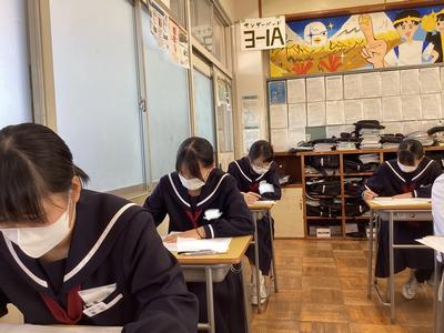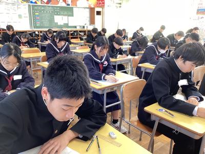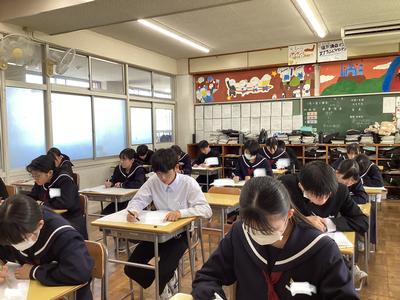 1年生は初めての確認テストでした。緊張した面持ちで真剣に取り組んでいました。3年生は自分の持っている力を十分に発揮できたでしょうか?2日目に向けて頑張ってください。