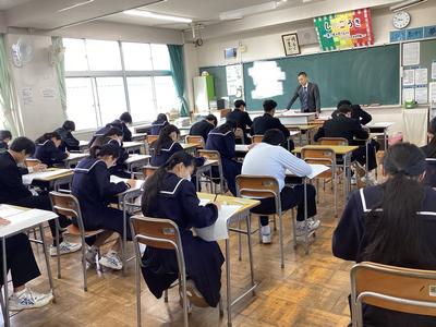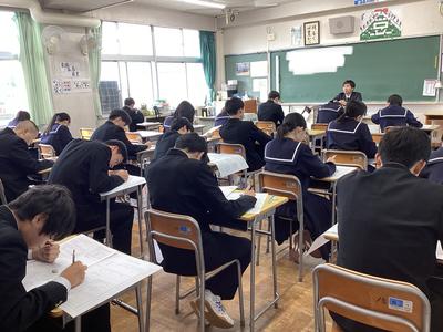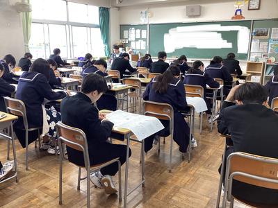 5日(水)に学力診断テストの社会と理科の2教科を行いました。これまで準備してきた成果を発揮するよう、時間いっぱい集中して問題に取り組んでいました。