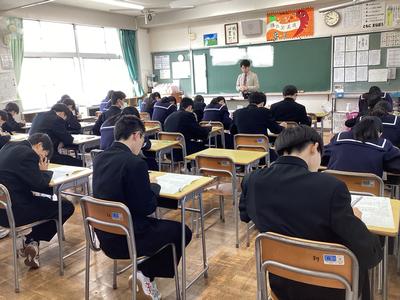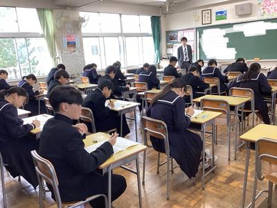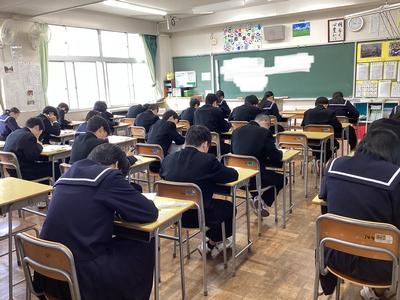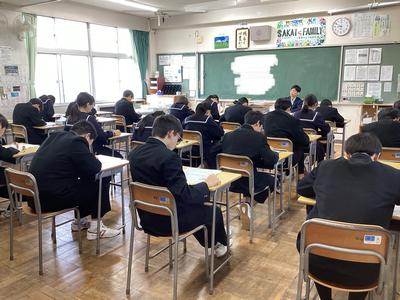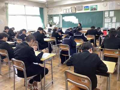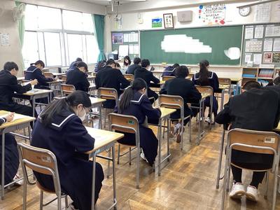 2年生は2教科の確認テストを行いました。しっかりと集中して問題を解いていました。