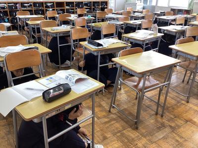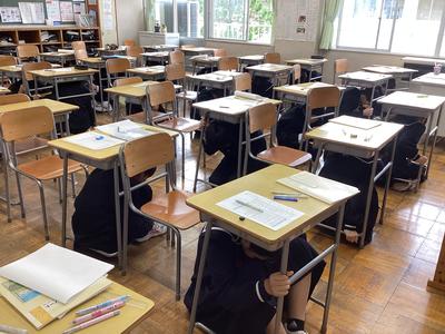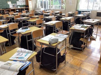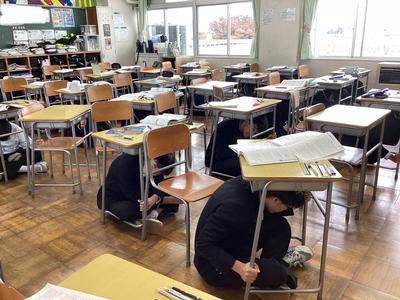 5日に緊急地震速報を見聞きした際の全国的な行動訓練が行われました。本校生徒も外から緊急地震速報が聞こえてくると机の足をしっかりと持ちながら下に入って頭部を保護する体勢をとりました。地震はいつ起こるかわかりませんので日頃からの訓練が大切ですね。