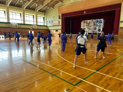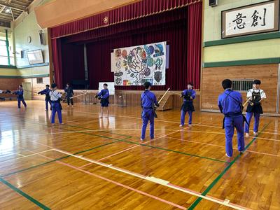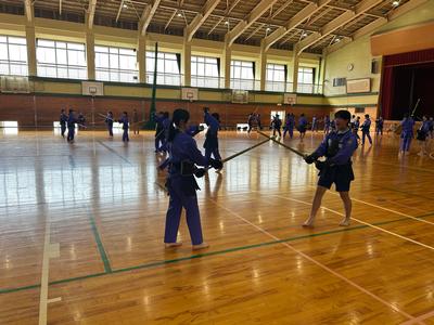 2年1組、2組の体育の様子です。剣道の学習です。胴と小手をつけて技の練習をしました。大きな声を出して竹刀を振る姿から一生懸命さが伝わってきました。