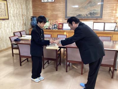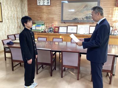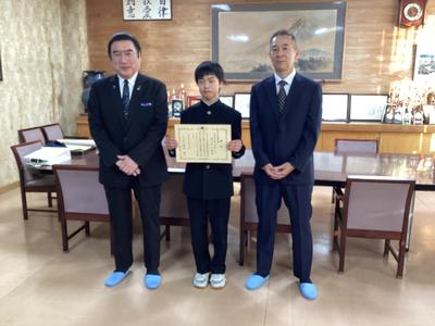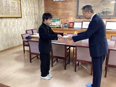 本校の1年生生徒が「税の標語コンクール」で「武生税務署長賞」を受賞し、その表彰式が校長室で行われました。武生税務署長様ほか多くの方が参列される中、表彰状が授与されました。授与後には「とても素晴らしい標語でした。」との言葉もいただきました。