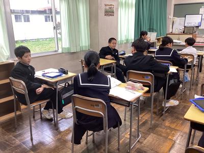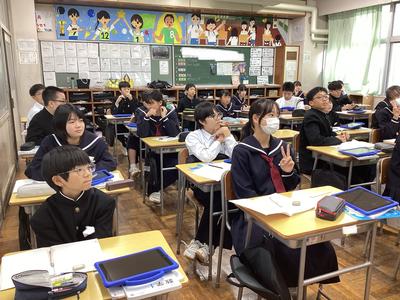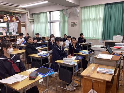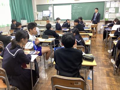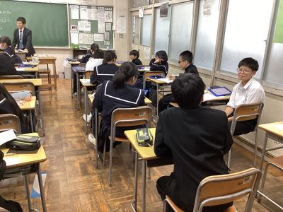 1年5組の数学の様子です。変化と対応について学習しており、反比例の学習に入りました。基本的なことからしっかりと身につけてしまいましょうね。