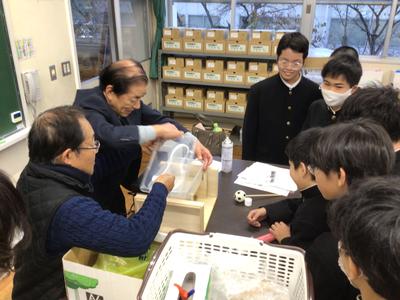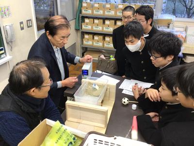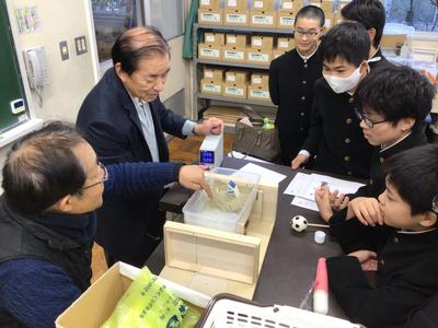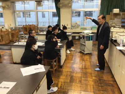 科学部の「おもしろ科学体験教室」の2日目の様子です。今日も講師の先生が来られ、ファラデーの電磁誘導発電、真鍋淑郎博士の二酸化炭素による地球温暖化に関する実験を体験しました。講師の先生方のおかげで楽しい時間を過ごすことができました。