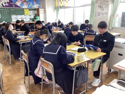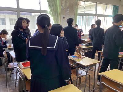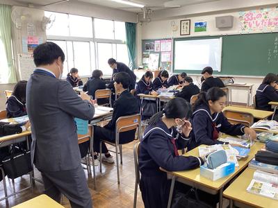 13日(木)は、市指導主事学校訪問日で、市教育委員会の指導主事の先生方や市内小中学校の先生方が来校され、本校の国語、理科、英語、美術と道徳の授業を参観されました。1限目の様子です。グループ活動やペア活動をしっかりと行っていました。
