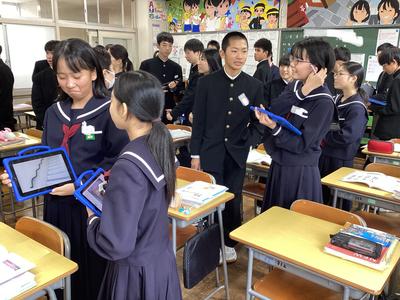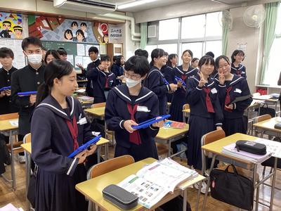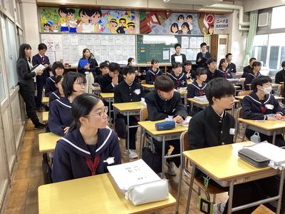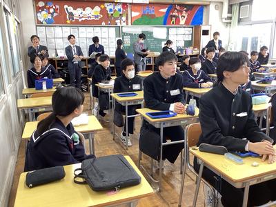 13日(木)は、市指導主事学校訪問日で、市教育委員会の指導主事の先生方や市内小中学校の先生方が来校され、本校の国語、理科、英語、美術と道徳の授業を参観されました。3限目の様子です。クラスみんなで考えながら、課題に迫っていきました。