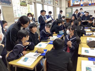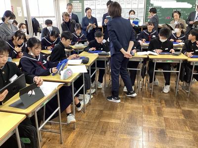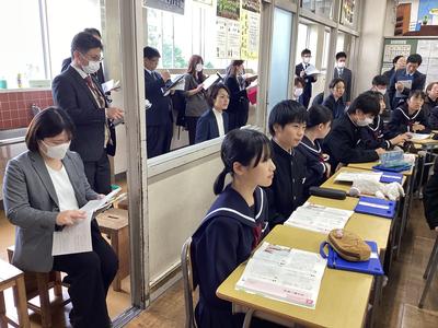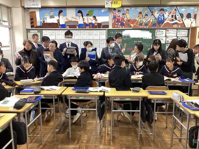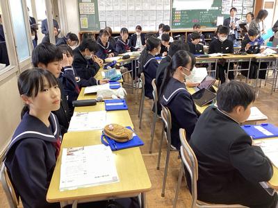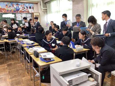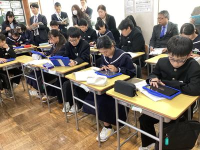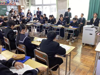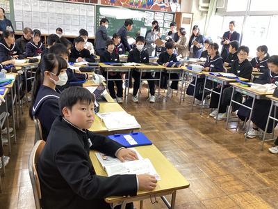13日(木)は、市指導主事学校訪問日で、市教育委員会の指導主事の先生方や市内小中学校の先生方が来校され、本校の国語、理科、英語、美術と道徳の授業を参観されました。5限目の道徳の全体参観の様子です。「差別の根底にあるもの」についてみんなで考えました。