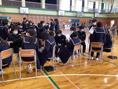 15日(土)は「親子で学ぼうDAY」で、1年生は「親子SNS教室」を行いました。講師として福井PRモデルの岡﨑さんをお招きし、前半は岡﨑さんからの講演、後半はグループディスカッションを行いました。講演を聴いた後でしたので、課題を自分事として捉えてしっかりと話し合いができました。また、保護者の方同士のディスカッションも活発に行われていました。ご家庭でも親子での話し合いをしていただけるとありがたいです。講師の岡﨑さん、計画を立てて下さった教育振興会1学年部会の皆様、ありがとうございました。