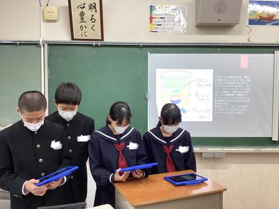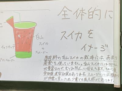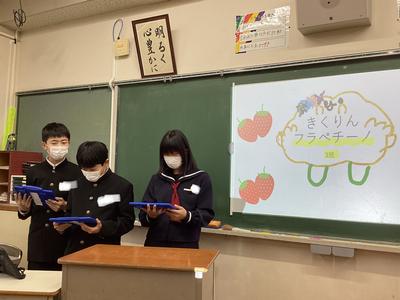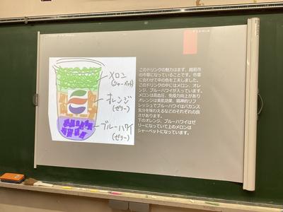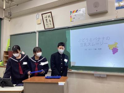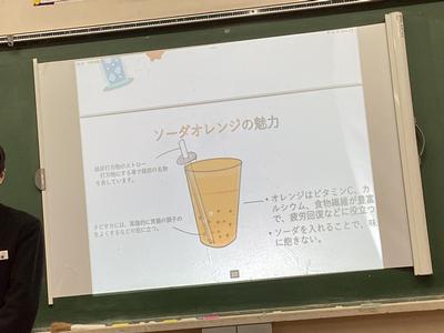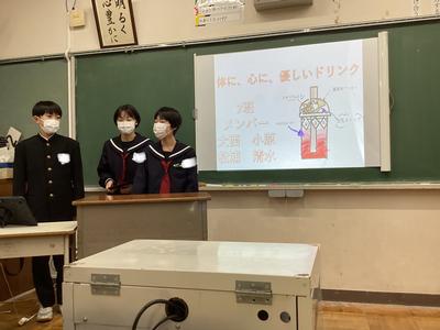 1年2組が創意の時間に商品開発プレゼンテーションを行いました。いろんな食材を使った発想豊かなドリンクやスムージーを提案してくれました。協力してくださるのは、駅前カフェmy name isさんです。お店の方のアドバイスを参考にみんなが笑顔になる商品が完成するといいですね。楽しみです。