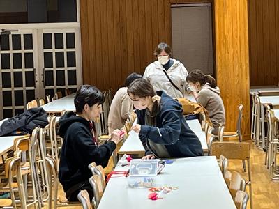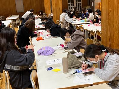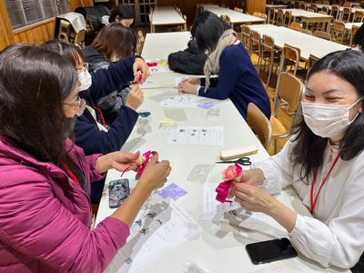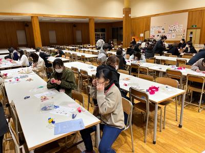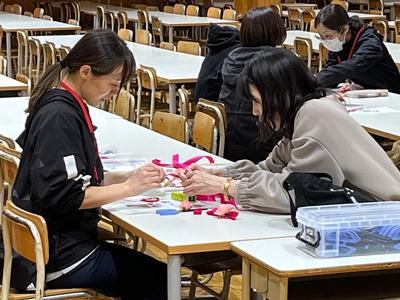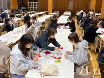 21日(金)、22日(土)に、3年生の保護者の方によるコサージュづくりが行われました。和やかに談笑しながら、卒業式にお子様が胸につけるコサージュを心を込めて作っておられました。