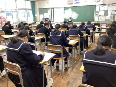 25日(火)は期末テストの1日目で3教科のテストを行いました。これまで学習してきた成果を発揮するために、時間いっぱい問題に取り組んでいました。