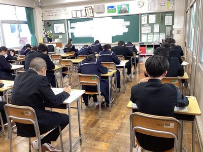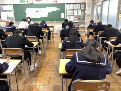 26日(水)は期末テストの2日目でした。保健体育を含めて3教科のテストを行いました。最後までしっかりと問題に向き合っていました。