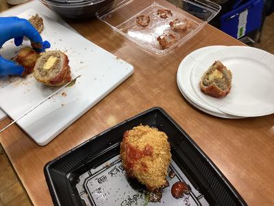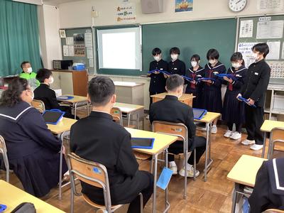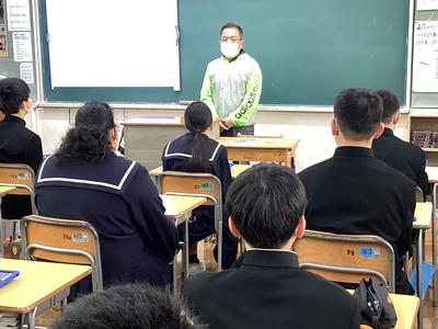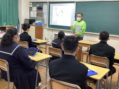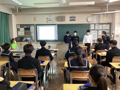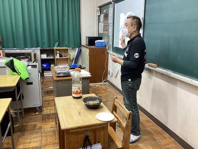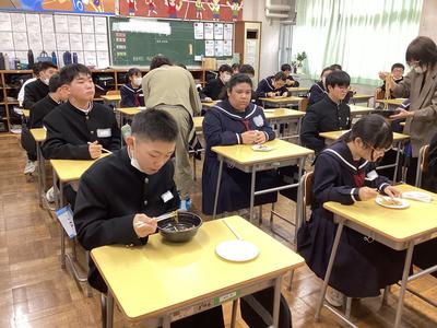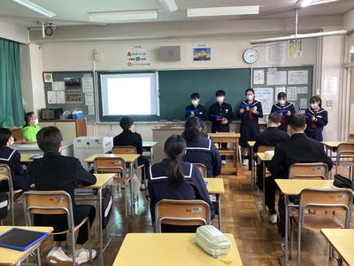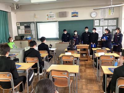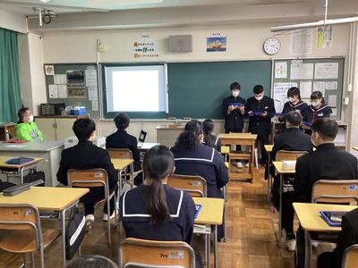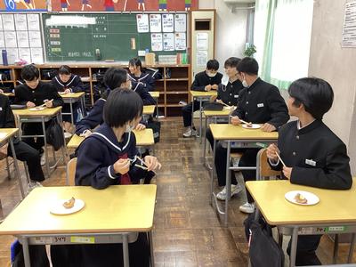 1年4組は、越前たけふ第一プロジェクトで江戸屋さんと連携して商品開発を行います。26日に江戸屋さんに来ていただき、自分たちで考えた商品のプレゼンをしました。その後、サプライズで江戸屋さんが持ってきてくださった商品案の試食を行いました。これでアイディアがより形に近づきますね。