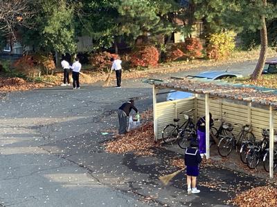 創意が丘のケヤキの木の葉がどんどんと落ちてくるようになりました。毎日、清掃担当の子が一生懸命集めてくれていますが、追いつかないくらいです。