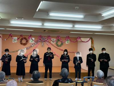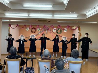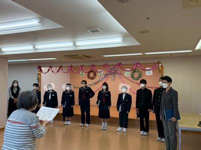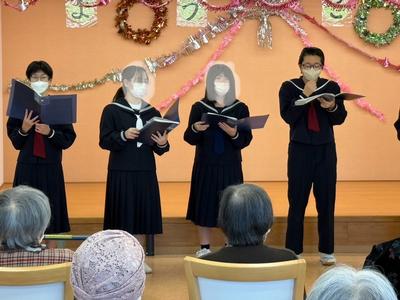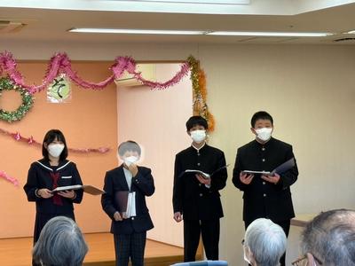 29日(土)に、本校合唱部と地域クラブが、藤の里で合唱を披露しました。今回は秋の真っ赤な秋などの唱歌を歌いました。和やかな雰囲気で一緒に口ずさんで下さる利用者の方もいらっしゃいました。励ましの言葉もたくさん頂き、生徒たちも嬉しそうに笑顔で帰っていきました。