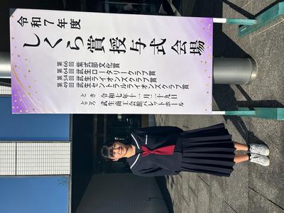 29日(土)に、武生商工会館で、しくら賞授与式が行われ、本校からも文芸、リーダーシップ、スポーツ、科学の各分野で活躍した生徒が紫式部文化賞、紫式部文化賞特別賞、武生ロータリークラブ賞、武生ライオンズクラブ賞、武生セントラルライオンズクラブ賞の各賞を授与されました。受賞した皆さん、おめでとうございます。