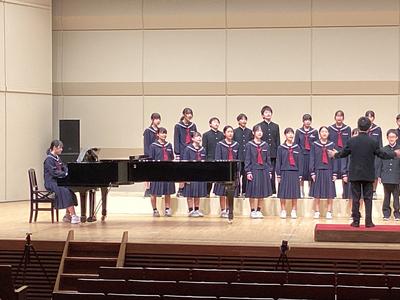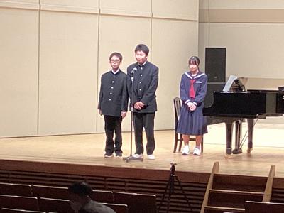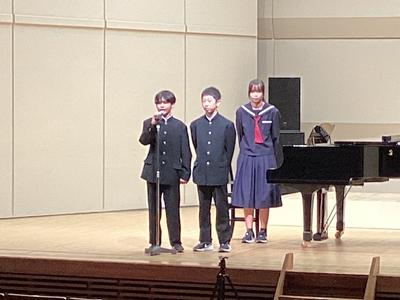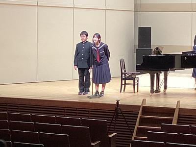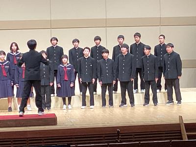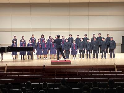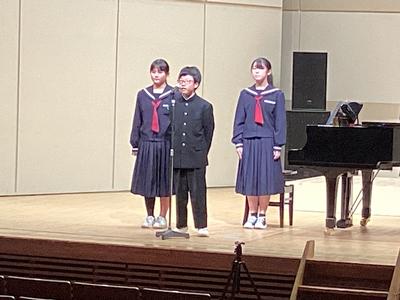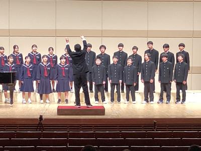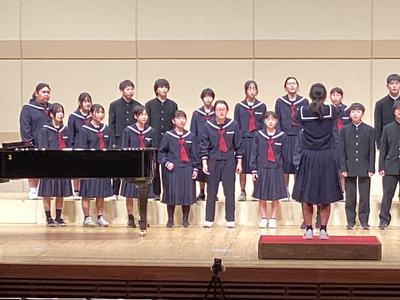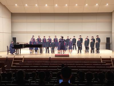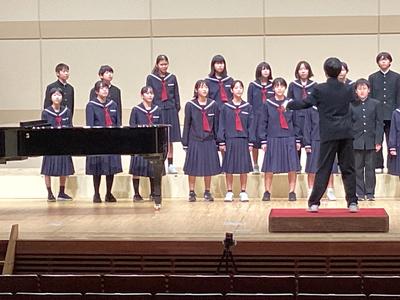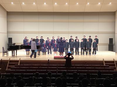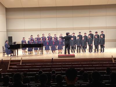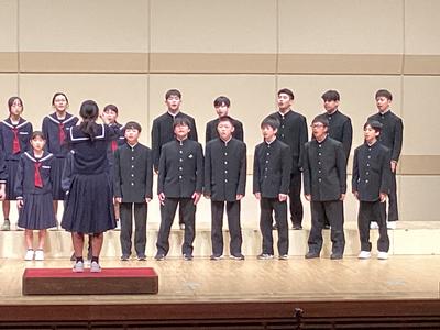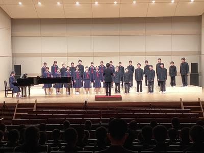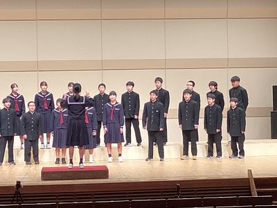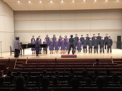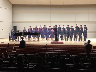 1年生の部です。初めての合唱コンクールで緊張感が見られましたが、元気な歌声を会場に響かせることができました。