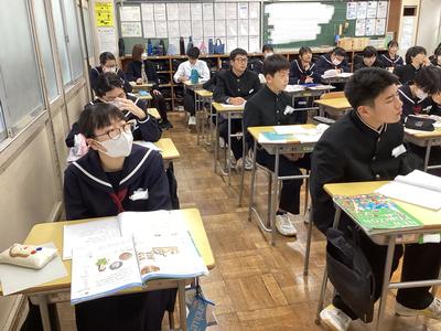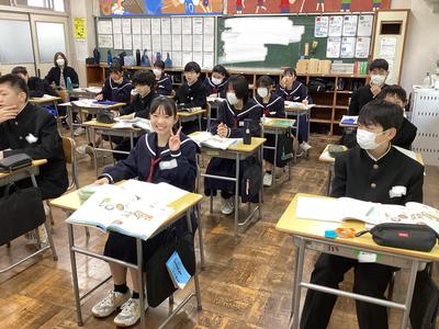 1年4組の英語の様子です。ALTの発音を聞いて、元気な声で英単語や英文を読みました。すぐに間違いを指摘してもらえるのがいいですね。