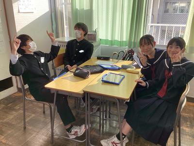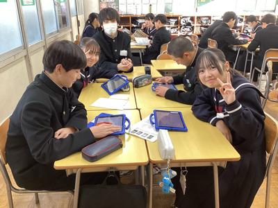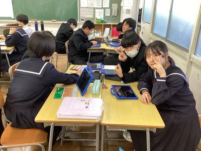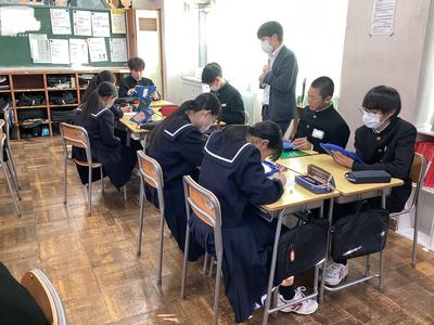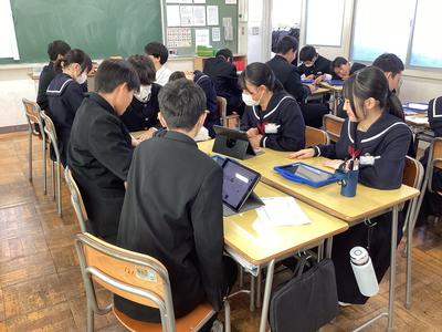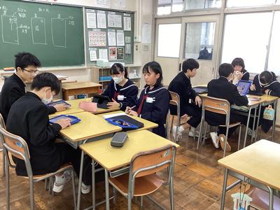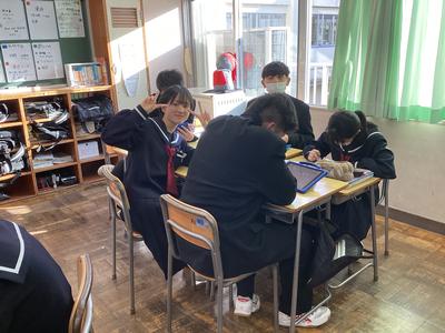 2年生のカルタづくりの様子です。初めての取組で戸惑うことばかりですが、協力しながら製作を進めています。