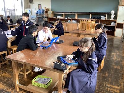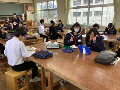 3年6組の美術の様子です。「目に見えないもの」というテーマでイメージしたものを紙粘土を用いて、色と形で表します。どんな作品ができるか楽しみですね。
