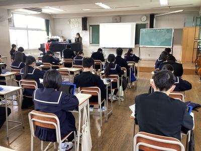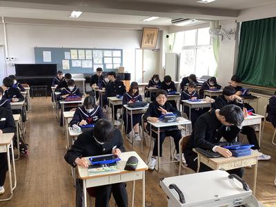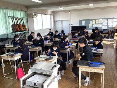 3年5組の音楽の様子です。「ブルタバ(モルダウ)」という曲を聴いて、当時の時代背景から作品に込められた想いを感じ取っていきます。