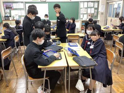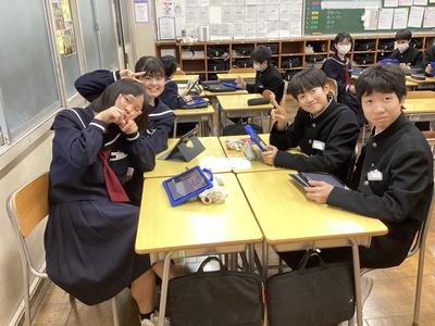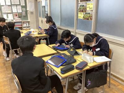 2年6組の創意の様子です。2年生は一中校区や一中のことについて学べるカルタを制作しています。読み札はほぼ完成して、取り札のイラストを描いています。
