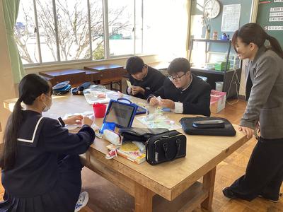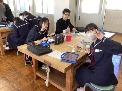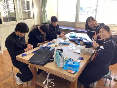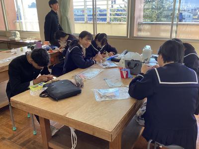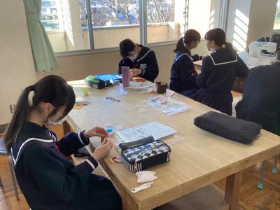 3年1組の家庭科の様子です。お手玉づくりが進んでいます。思い思いのキャラクターを器用に作っています。