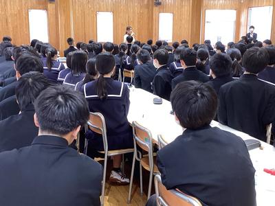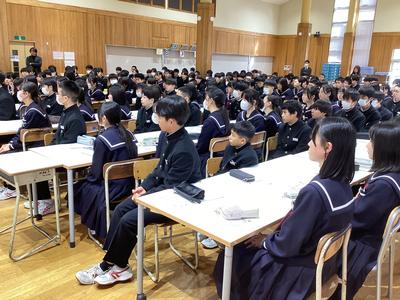 冬休みを前に、学級や学年で担任や学年の教員からいろいろな話を聞きました。4月からは3年生です。3学期をしっかりとした準備期間にできるよう、冬休みも充実させて下さいね。