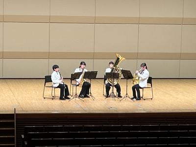 26日(金)に越前市文化センターで、第46回丹南地区吹奏楽アンサンブルコンテストが行われました。県大会出場を目指して、本校からは4チームが出場しました。どのチームも息の合った演奏で、すばらしい音色をホールいっぱいに響かせていました。