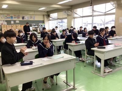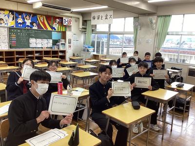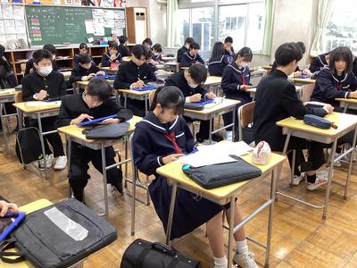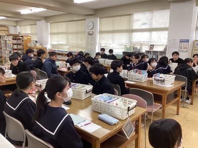 9日(金)に委員会活動が行われ、1月の活動について話し合われました。中学校生活が残りわずかとなった3年生の代議員会ではクラスに呼びかけるメッセージを発表していました。