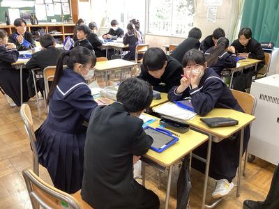 1年1組の美術の様子です。自分が考えた判じ絵を見せて、答えを考えてもらいました。よく考えられているものばかりで、感心する声がたくさん聞かれました。