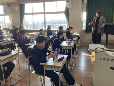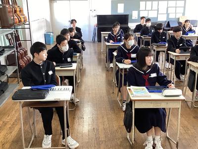 2年4組の音楽の様子です。「運命」を鑑賞し、「運命の動機」に注目して音楽の特徴を感じとりました。