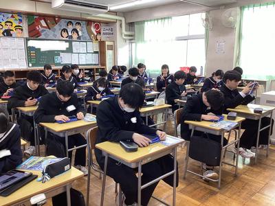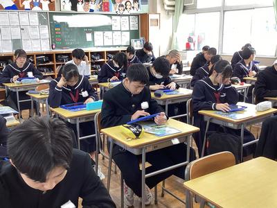 2年生は、創意の時間に「高校調べ」を行っています。パンフレットやHPを参考に、高校について調べたことをまとめています。来月には、近隣の県立高校の学校説明会が行われますので、下調べができるといいですね。