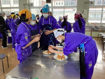 1年3組の「越前たけふ第一プロジェクト」の様子です。ましゅまろさんをお招きし、最後の試作会を行いました。アドバイスをもらいながら、当日提供する形に仕上げていきました。試行錯誤していく過程で、いろいろなことを学べましたね。