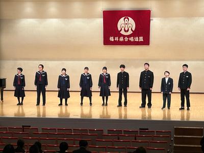 1日(日)に鯖江市文化センター大ホールで、第39回福井県ヴォーカルアンサンブルコンテストが行われ、本校生徒が越前市地域クラブの一員として出場しました。7番目にステージに立ち、「雪の街」を歌いました。美しいハーモニーをホールいっぱいに響かせてました。