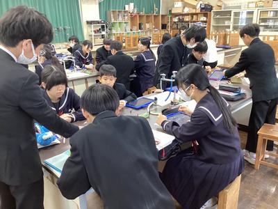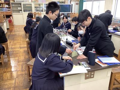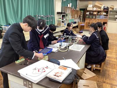 2年1組の理科の様子です。直列回路と並列回路にはたらく電圧の大きさを測定しました。電圧計のつなぎ方に注意しましょうね。