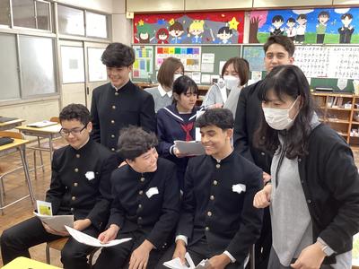 本校の外国人生徒が武生第二中学校坂口分校、武生第六中学校、南越中学校の生徒とオンラインで交流しました。他校の生徒にブラジルの生活に関するクイズに答えてもらったり、質問に答えたりしました。短い時間でしたが、お互いに知らないことを伝え合うことができて大変盛り上がりました。