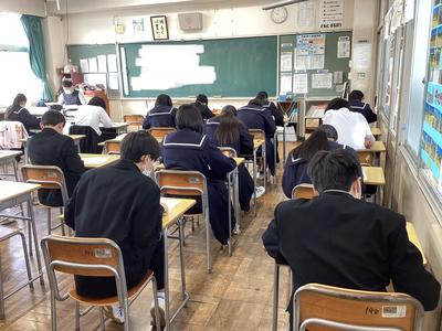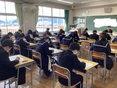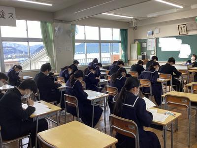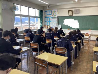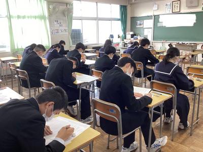 期末テスト1日目の様子です。先日、私立高校の入試を終えたばかりの生徒もいますが。集中して問題に取り組んでいました。