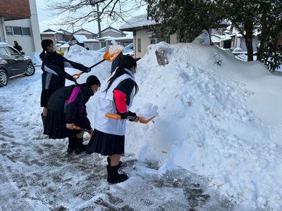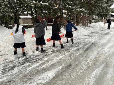 1年5組の生徒が除雪の手伝いをしてくれました。おかげで生徒玄関前がきれいになりました。ありがとうございました。