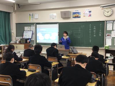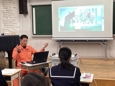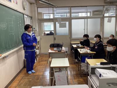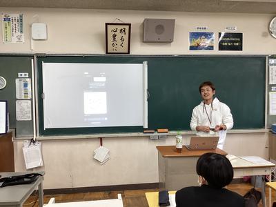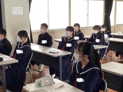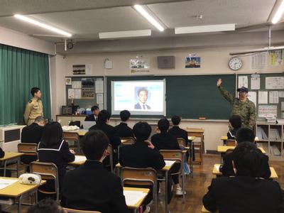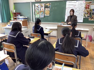 本日、5、6時間目に地域の講師を招いて、1年生が“ようこそ先輩”を行いました。“ようこそ先輩”は生徒たちが職業に関心をもち、働く意義について考え、自分自身の職業観をふくらませる機会として、自分の選んだ講師の方からお話を聞く活動です。仕事のやりがいや中学生の今、身につけて欲しいことなどをたくさん話していただきました。