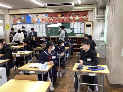 1年4組の家庭科の様子です。衣服を購入する時に、どのようなことを考えればよいのかを話し合いました。