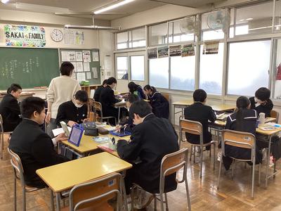 2年2組の国語の様子です。自分がお薦めする本を紹介するビブリオバトルを班ごとに行いました。紹介文を聞くとどの本も面白そうで読んでみたくなりますね。