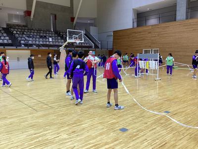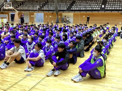3年生のバスケットボール大会のエキジビションマッチと閉会式の様子です。優勝した1組と教員チームが試合をしました。とても盛り上がり、楽しい思い出がまた一つ出来ました。閉会式の後始末もしっかりと協力して行ってくれました。さすが一中の三年生です。