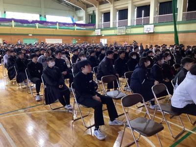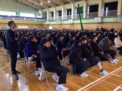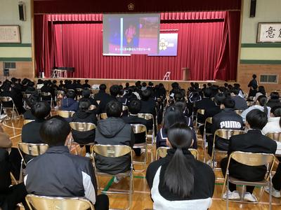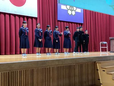 3年生を送る会の様子です。お世話になった先生方からメッセージをいただきました。久しぶりに見る先生方からの温かい言葉に感激しました。最後にサプライズ企画もあり、笑いあり、涙ありの素敵な時間になりました。企画・運営に頑張った生徒会の皆さん、ありがとうございました。