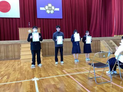 予行の後に、今年度の「越前市教育委員会優秀選手賞」の表彰披露がありました。来年度もそれぞれ活躍してくれることを期待しています。
