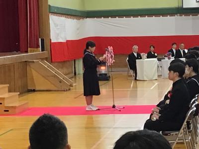 在校生代表により卒業生への感謝が語られました。卒業生代表からは、学校生活の思い出、これまで支えてくれた周りの人への感謝とこれかの決意が語られました。