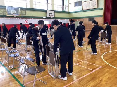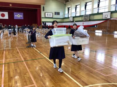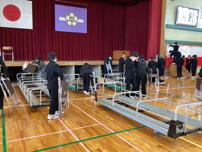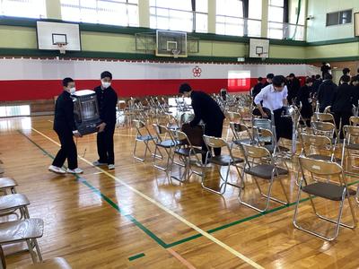 卒業式の会場の撤去を2年生の生徒が行ってくれました。今日からは登校する生徒の最上級生になります。その自覚が垣間見られる時間になりました。